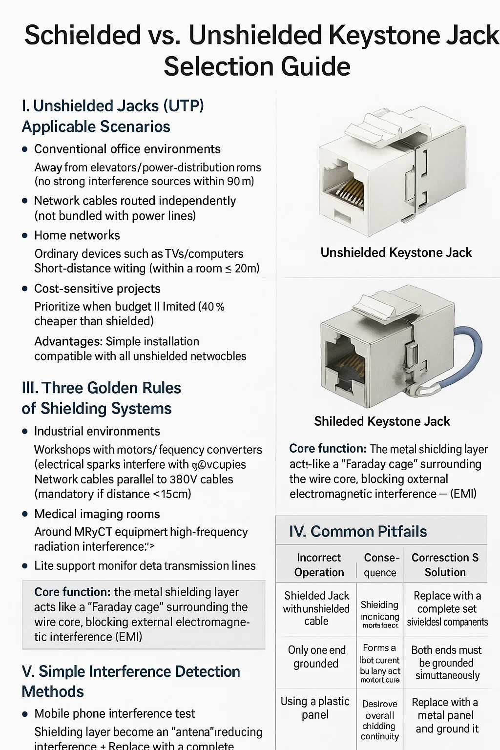 Tất cả các đầu nối RJ45 của cáp mạng Keystone Jack RJ45 phải được che chắn (hư hỏng bất kỳ thành phần nào sẽ khiến hệ thống không hoạt động hiệu quả)