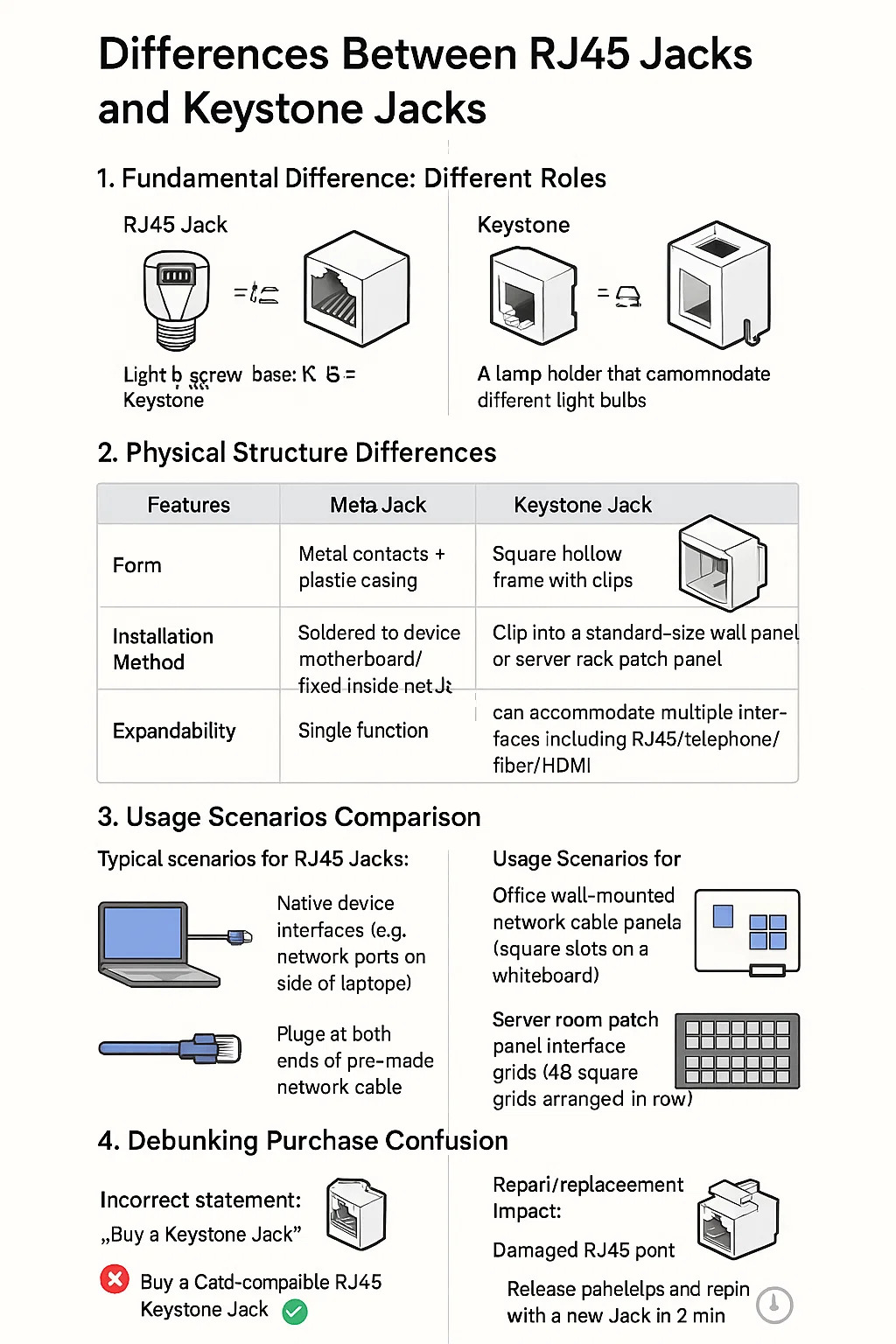 Sự khác biệt giữa giắc cắm RJ45 và giắc cắm Keystone